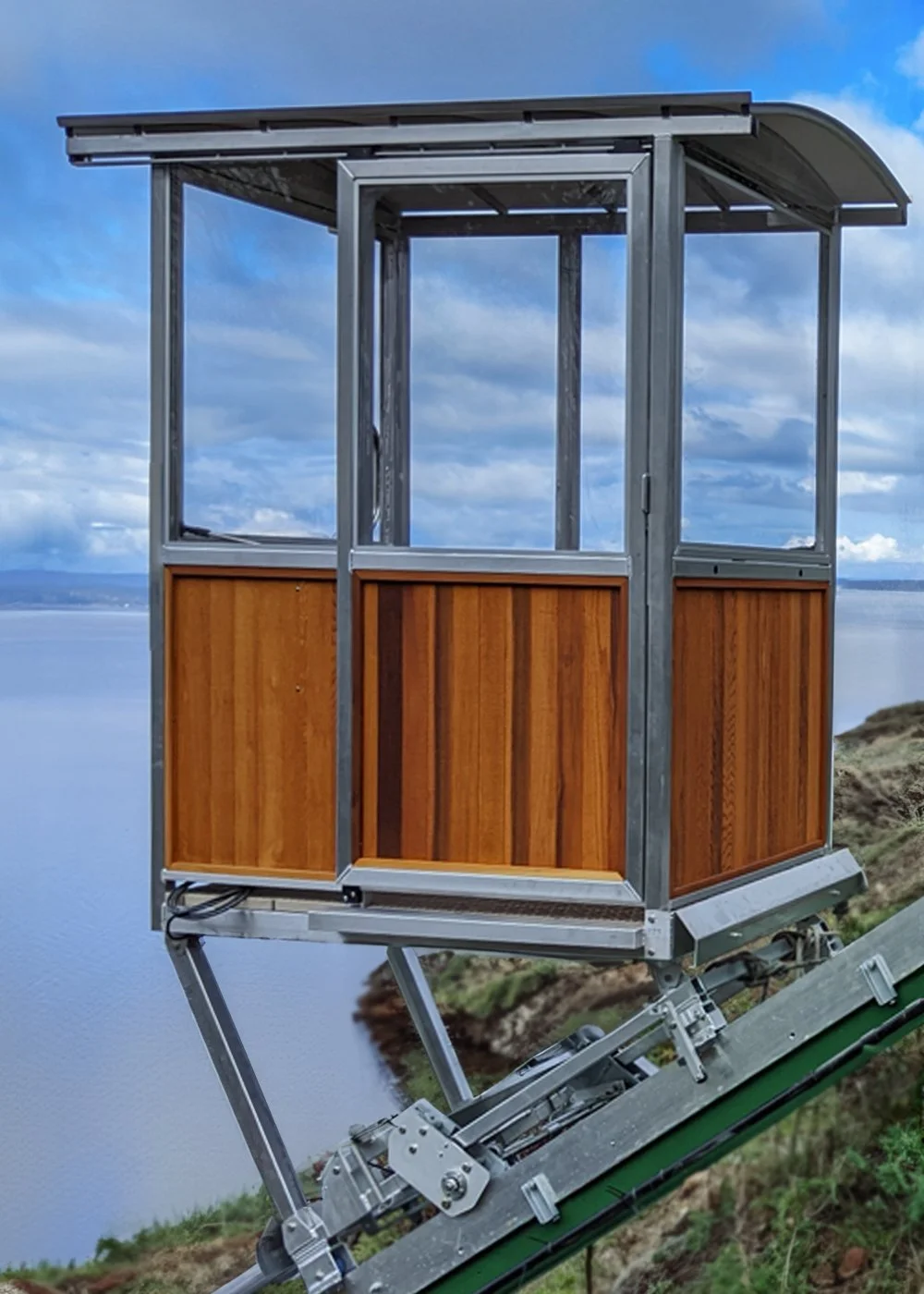 Every High Bank Elevators track lift is designed and fabricated in our Poulsbo, Washington workshop. We build nearly every mechanical component ourselves — the gondola, hoist, track system, safety components, and control panels — which means we know every system we install, and we can stand behind every part of it.